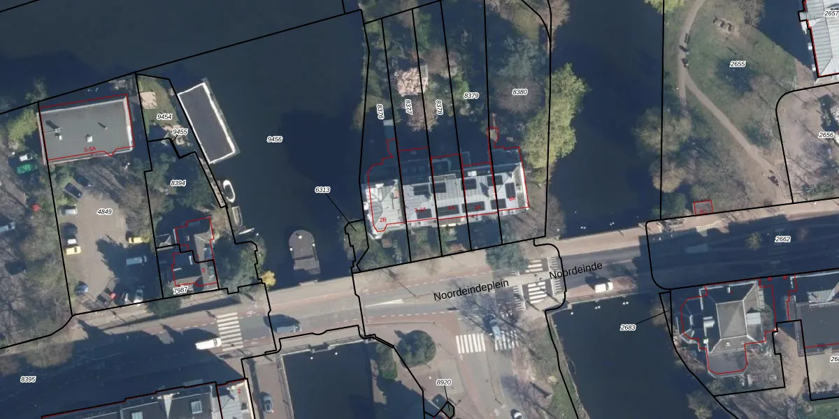 Noordeindeplein 2-A is gelegen op kadastraal perceel LDN01M8377. Deze kadastrale aanduiding is uniek en wordt gebruikt door het Kadaster om eigendomsrechten en andere zakelijke rechten vast te leggen. Het perceel maakt onderdeel uit van de kadastrale gemeente Leiden.