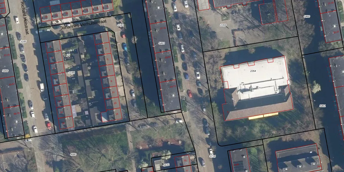 Het perceel waarop het adres ligt is LDN01-O-5463. De afkorting 'LDN01' staat voor kadastrale gemeente Leiden. De gemiddelde perceeloppervlakte in de kadastrale gemeente Leiden is 703,94 m². Dit perceel is met zijn 817 m² dus groter dan gemiddeld. Het kleinste perceel in de kadastrale gemeente is 0 m² groot. De grootste perceeloppervlakte is 51,8 ha. Op het perceel liggen in totaal 32 adressen. De huidige grenzen van het perceel zijn digitaal in de Basisregistratie Kadaster (BRK) geregistreerd op 22-09-2009.