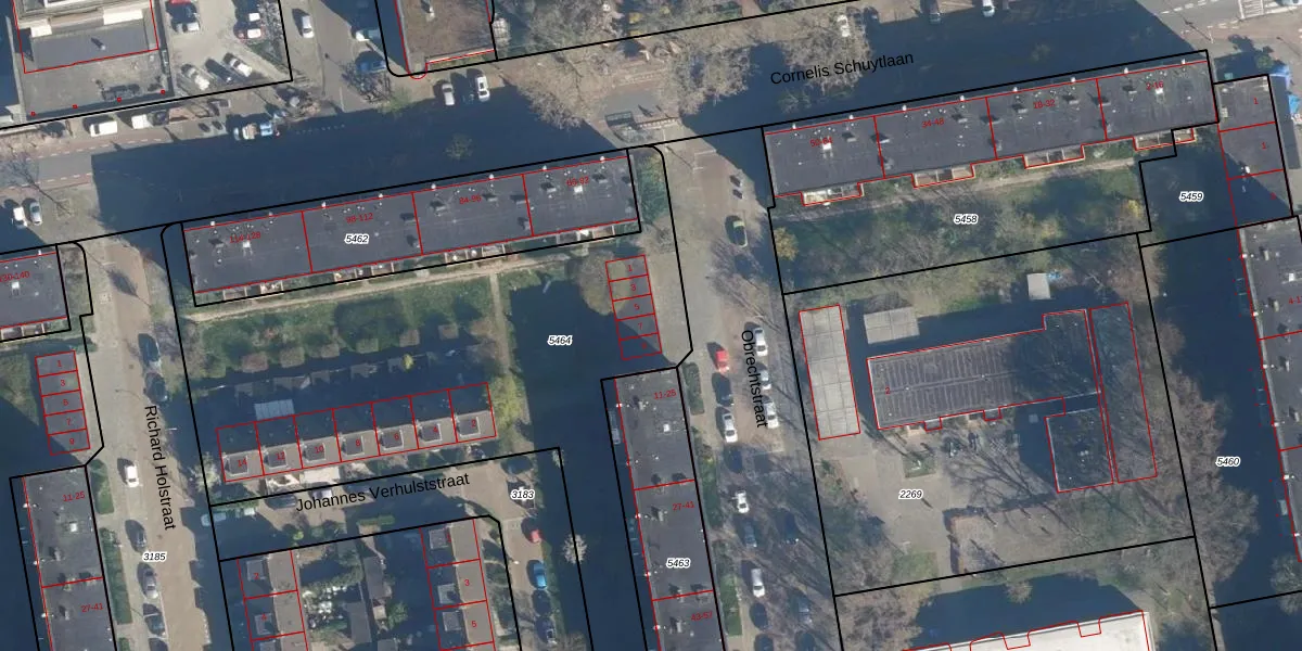 Obrechtstraat 7 is gelegen op kadastraal perceel LDN01O5464. Deze kadastrale aanduiding is uniek en wordt gebruikt door het Kadaster om eigendomsrechten en andere zakelijke rechten vast te leggen. Het perceel maakt onderdeel uit van de kadastrale gemeente Leiden.