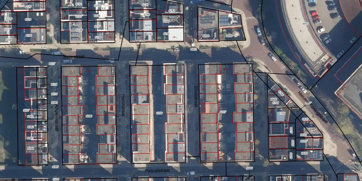 Het adres is gelegen op perceel 6206 in de sectie K en de kadastrale gemeente Leiden. De kadastrale aanduiding is aldus LDN01-K-6206. Het perceel is met 1621 m² relatief groot. Het gemiddelde ligt in de kadastrale gemeente Leiden op 703,99 m². De grootste perceeloppervlakte in de kadastrale gemeente is 51,8 ha. De kleinste oppervlakte bedraagt 0 m². Op het perceel liggen in totaal 21 adressen. In de Basisregistratie Kadaster (BRK) werden de grenzen van het perceel geregistreerd op 05-09-2011.