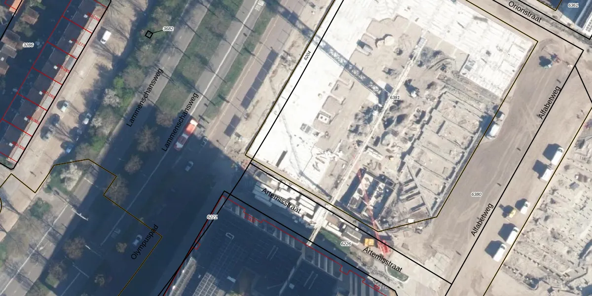 Het adres is gelegen op perceel 6381 in de sectie O en de kadastrale gemeente Leiden. De kadastrale aanduiding is aldus LDN01-O-6381. Het perceel is met 5186 m² relatief groot. Het gemiddelde ligt in de kadastrale gemeente Leiden op 703,99 m². De grootste perceeloppervlakte in de kadastrale gemeente is 51,8 ha. De kleinste oppervlakte bedraagt 0 m². Op het perceel zijn 372 adressen aanwezig. De huidige grenzen van het perceel zijn digitaal in de Basisregistratie Kadaster (BRK) geregistreerd op 10-06-2024.