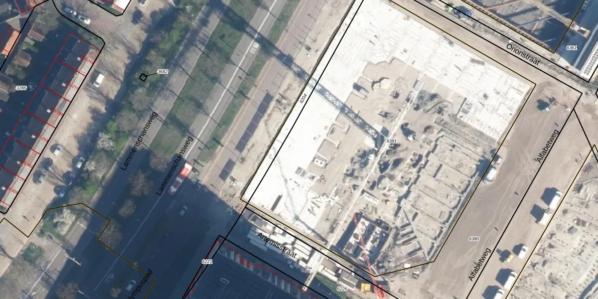 Het adres is gelegen op perceel 6381 in de sectie O en de kadastrale gemeente Leiden. De kadastrale aanduiding is aldus LDN01-O-6381. Het perceel is met 5186 m² relatief groot. Het gemiddelde ligt in de kadastrale gemeente Leiden op 703,99 m². De grootste perceeloppervlakte in de kadastrale gemeente is 51,8 ha. De kleinste oppervlakte bedraagt 0 m². Op het perceel zijn 372 adressen aanwezig. In de Basisregistratie Kadaster (BRK) werden de grenzen van het perceel geregistreerd op 10-06-2024.
