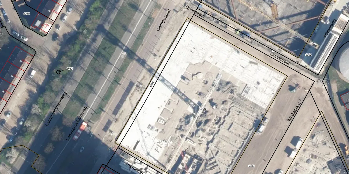 Het adres is gelegen op perceel 6381 in de sectie O en de kadastrale gemeente Leiden. De kadastrale aanduiding is aldus LDN01-O-6381. Het perceel is met 5186 m² relatief groot. Het gemiddelde ligt in de kadastrale gemeente Leiden op 703,99 m². De grootste perceeloppervlakte in de kadastrale gemeente is 51,8 ha. De kleinste oppervlakte bedraagt 0 m². Op het perceel liggen in totaal 372 adressen. De huidige grenzen van het perceel zijn digitaal in de Basisregistratie Kadaster (BRK) geregistreerd op 10-06-2024.