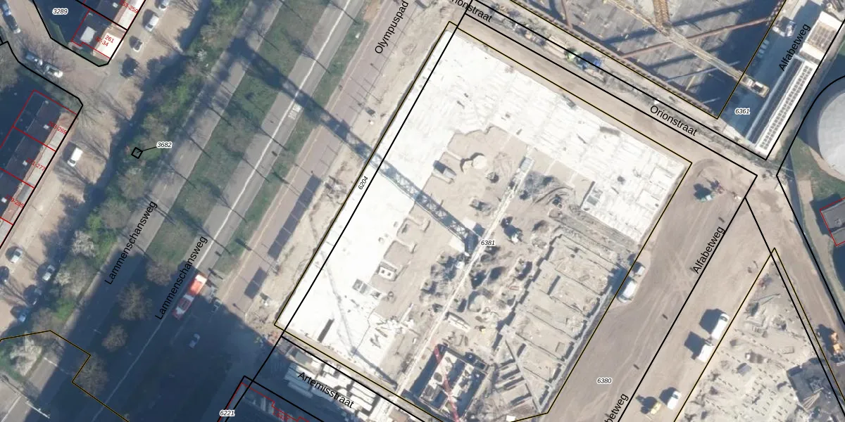 Het adres is gelegen op perceel 6381 in de sectie O en de kadastrale gemeente Leiden. De kadastrale aanduiding is aldus LDN01-O-6381. Het perceel is met 5186 m² relatief groot. Het gemiddelde ligt in de kadastrale gemeente Leiden op 703,99 m². Het grootste perceel in de kadastrale gemeente is 51,8 ha. Het kleinste perceel heeft een oppervlakte van 0 m². Er zijn 372 adressen aanwezig op het perceel. De laatste wijziging in het de Basisregistratie Kadaster (BRK) was op 10-06-2024.
