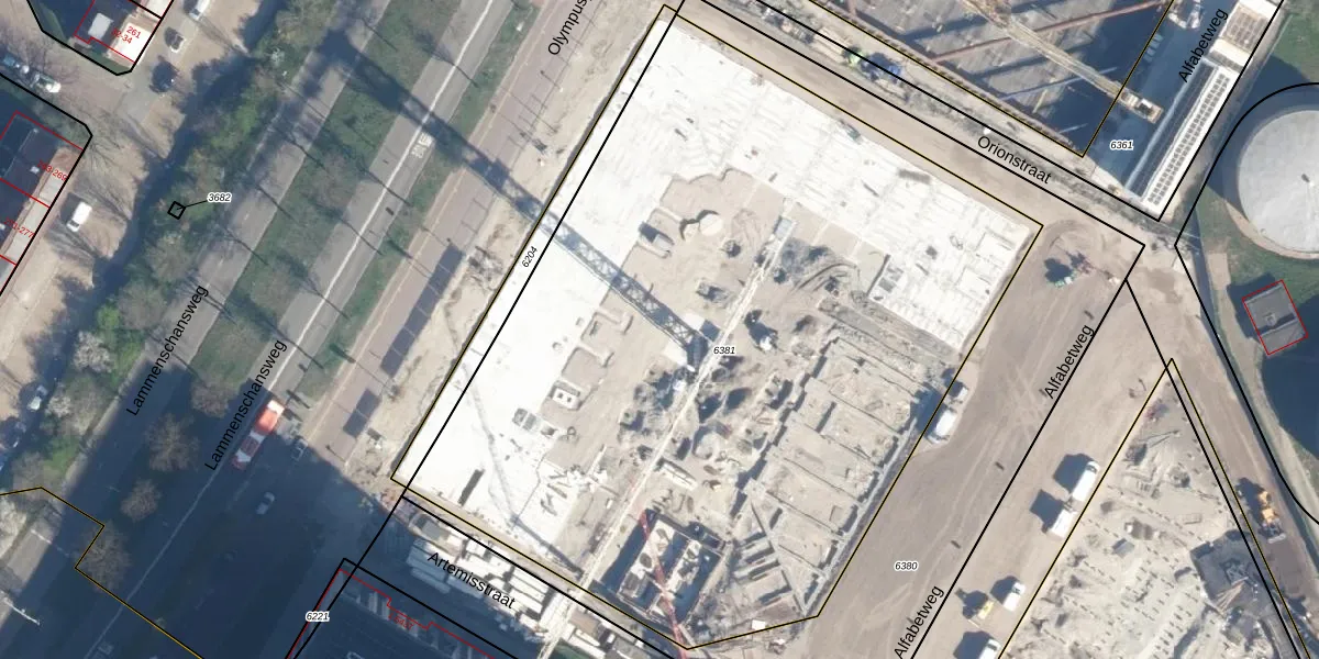 Het adres is gelegen op perceel 6381 in de sectie O en de kadastrale gemeente Leiden. De kadastrale aanduiding is aldus LDN01-O-6381. Het perceel is met 5186 m² relatief groot. Het gemiddelde ligt in de kadastrale gemeente Leiden op 703,99 m². Het grootste perceel in de kadastrale gemeente is 51,8 ha. Het kleinste perceel heeft een oppervlakte van 0 m². Op het perceel zijn 372 adressen aanwezig. De huidige grenzen van het perceel zijn digitaal in de Basisregistratie Kadaster (BRK) geregistreerd op 10-06-2024.