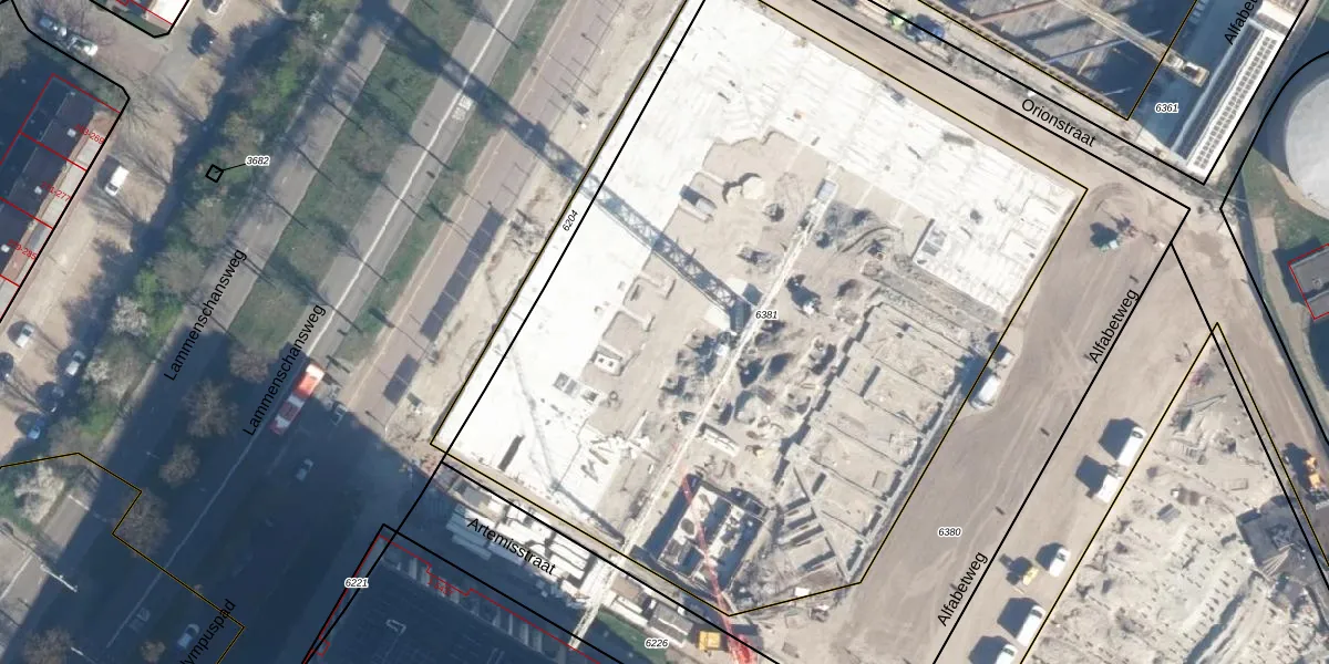 Het adres is gelegen op perceel 6381 in de sectie O en de kadastrale gemeente Leiden. De kadastrale aanduiding is aldus LDN01-O-6381. Het perceel is met 5186 m² relatief groot. Het gemiddelde ligt in de kadastrale gemeente Leiden op 703,99 m². Het grootste perceel in de kadastrale gemeente is 51,8 ha. Het kleinste perceel heeft een oppervlakte van 0 m². Op het perceel liggen in totaal 372 adressen. De huidige grenzen van het perceel zijn digitaal in de Basisregistratie Kadaster (BRK) geregistreerd op 10-06-2024.