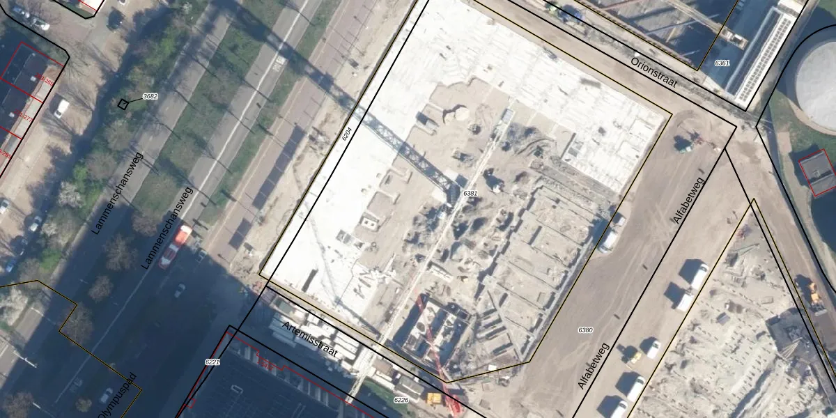 Het adres is gelegen op perceel 6381 in de sectie O en de kadastrale gemeente Leiden. De kadastrale aanduiding is aldus LDN01-O-6381. Het perceel is met 5186 m² relatief groot. Het gemiddelde ligt in de kadastrale gemeente Leiden op 703,99 m². Het grootste perceel in de kadastrale gemeente is 51,8 ha. Het kleinste perceel heeft een oppervlakte van 0 m². Op het perceel zijn 372 adressen aanwezig. In de Basisregistratie Kadaster (BRK) werden de grenzen van het perceel geregistreerd op 10-06-2024.