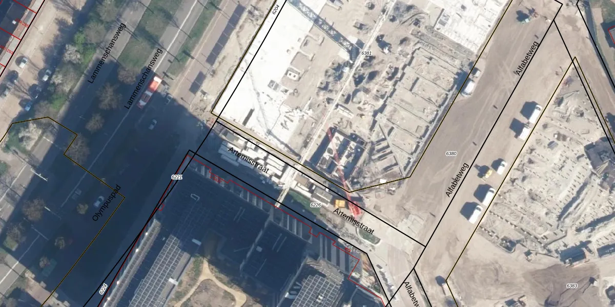 Het adres is gelegen op perceel 6381 in de sectie O en de kadastrale gemeente Leiden. De kadastrale aanduiding is aldus LDN01-O-6381. Het perceel is met 5186 m² relatief groot. Het gemiddelde ligt in de kadastrale gemeente Leiden op 703,99 m². De grootste perceeloppervlakte in de kadastrale gemeente is 51,8 ha. De kleinste oppervlakte bedraagt 0 m². Op het perceel liggen in totaal 372 adressen. In de Basisregistratie Kadaster (BRK) werden de grenzen van het perceel geregistreerd op 10-06-2024.