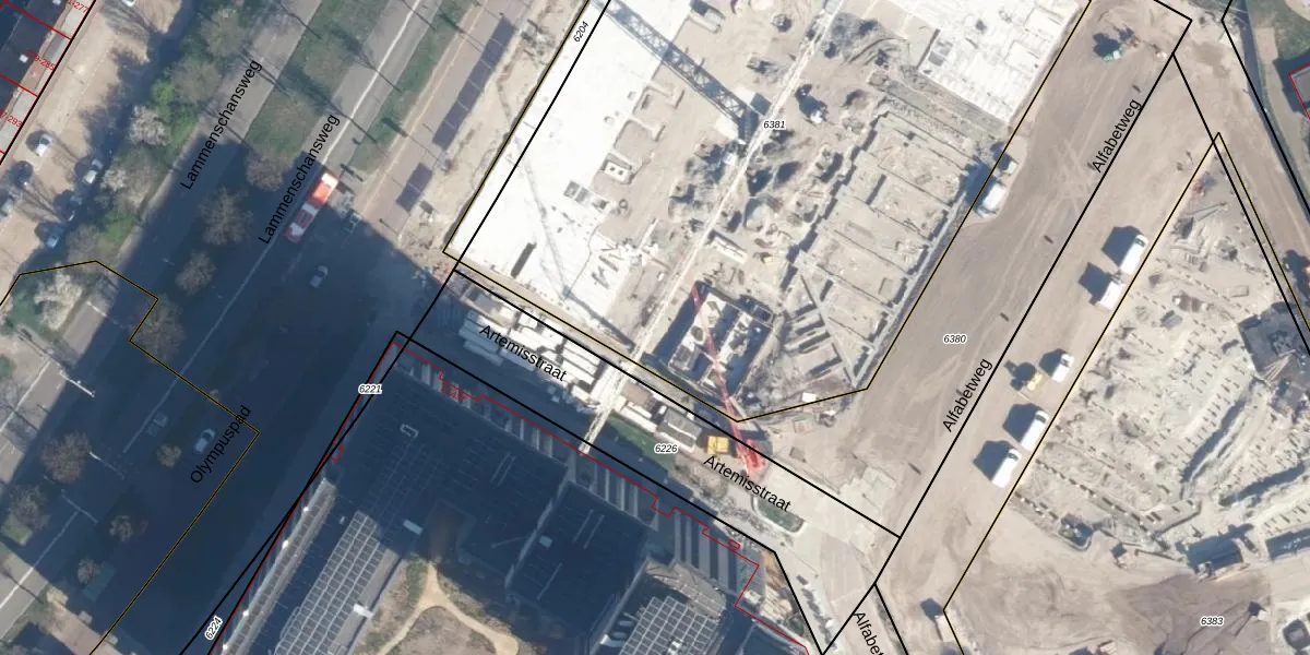 Het adres is gelegen op perceel 6381 in de sectie O en de kadastrale gemeente Leiden. De kadastrale aanduiding is aldus LDN01-O-6381. Het perceel is met 5186 m² relatief groot. Het gemiddelde ligt in de kadastrale gemeente Leiden op 703,99 m². De grootste perceeloppervlakte in de kadastrale gemeente is 51,8 ha. De kleinste oppervlakte bedraagt 0 m². Er zijn 372 adressen aanwezig op het perceel. De huidige grenzen van het perceel zijn digitaal in de Basisregistratie Kadaster (BRK) geregistreerd op 10-06-2024.