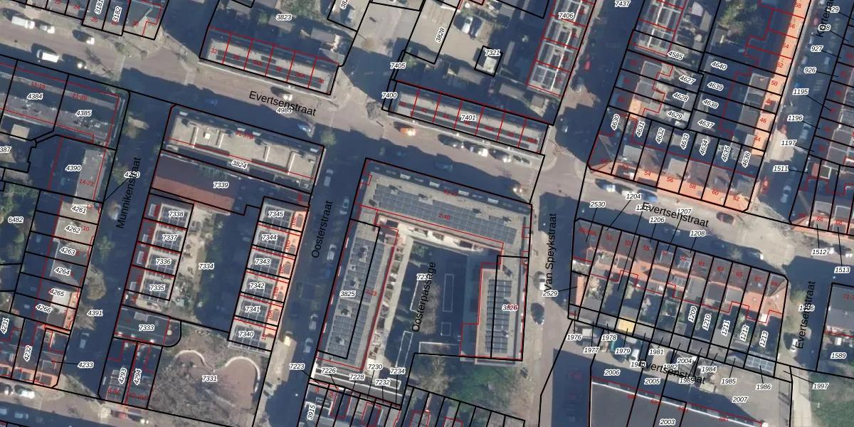 Het perceel waarop het adres ligt is LDN01-K-7233. De afkorting 'LDN01' staat voor kadastrale gemeente Leiden. Het perceel is met 1618 m² relatief groot. Het gemiddelde ligt in de kadastrale gemeente Leiden op 704,75 m². De grootste perceeloppervlakte in de kadastrale gemeente is 51,8 ha. De kleinste oppervlakte bedraagt 0 m². Er zijn 27 adressen aanwezig op het perceel. In de Basisregistratie Kadaster (BRK) werden de grenzen van het perceel geregistreerd op 16-07-2020.