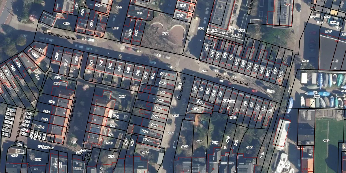 Het perceel waarop Oosterstraat 12 staat heeft een oppervlakte van 64 m². Dit is een klein perceel. De perceeloppervlakte wordt geregistreerd door het Kadaster. Gedetailleerde informatie over de maten van dit perceel kunt u vinden in het rapport Kadastrale kaart met maatvoering van Oosterstraat 12.