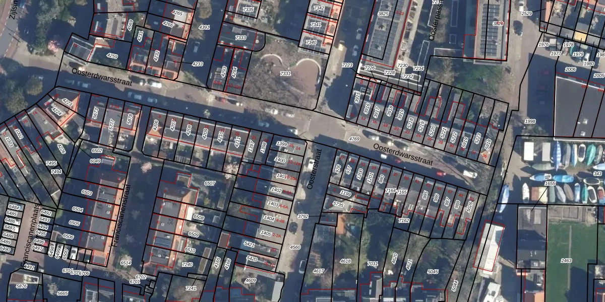Het perceel waarop Oosterstraat 14 staat heeft een oppervlakte van 63 m². Dit is een klein perceel. De perceeloppervlakte wordt geregistreerd door het Kadaster. Gedetailleerde informatie over de maten van dit perceel kunt u vinden in het rapport Kadastrale kaart met maatvoering van Oosterstraat 14.