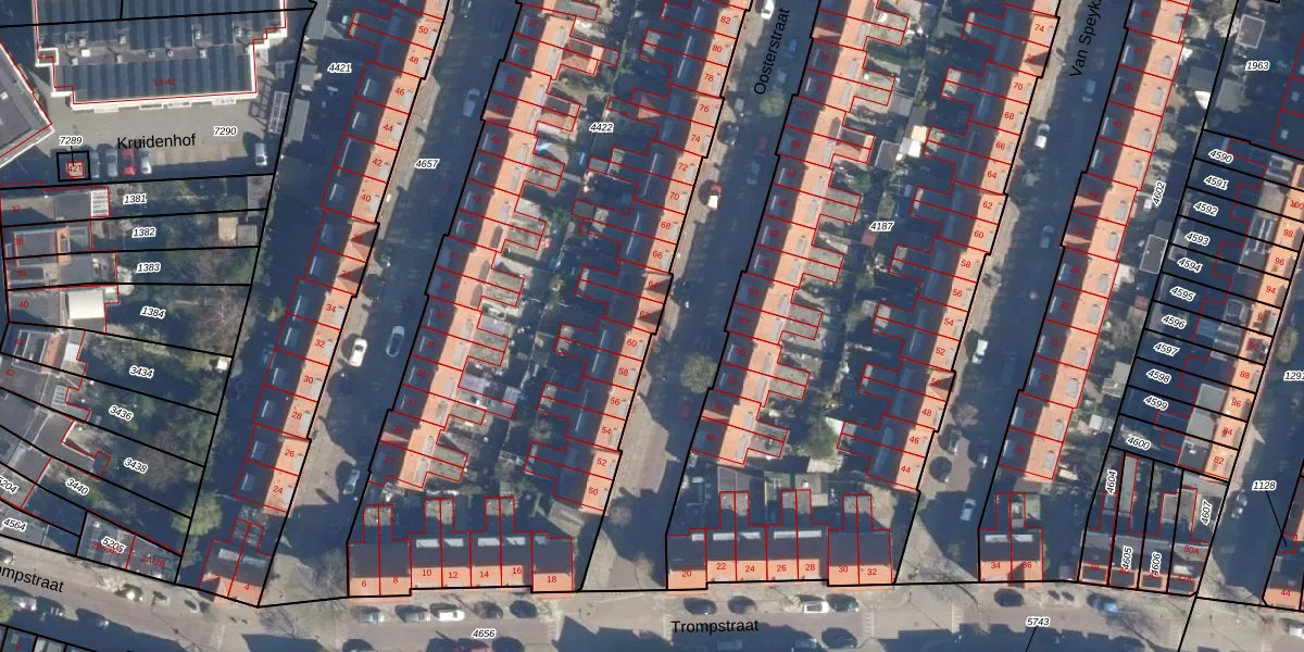 Het perceel waarop Oosterstraat 62 staat heeft een oppervlakte van 4878 m². Dit is een zeer groot perceel. De perceeloppervlakte wordt geregistreerd door het Kadaster. Gedetailleerde informatie over de maten van dit perceel kunt u vinden in het rapport Kadastrale kaart met maatvoering van Oosterstraat 62.