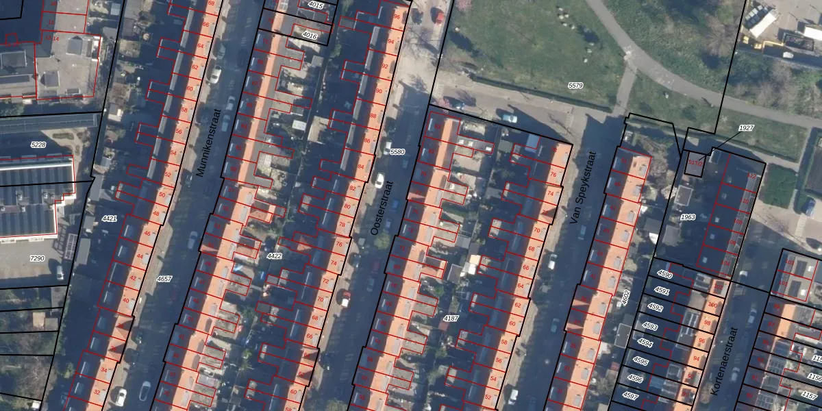 Het perceel waarop Oosterstraat 75 staat heeft een oppervlakte van 4030 m². Dit is een zeer groot perceel. De perceeloppervlakte wordt geregistreerd door het Kadaster. Gedetailleerde informatie over de maten van dit perceel kunt u vinden in het rapport Kadastrale kaart met maatvoering van Oosterstraat 75.