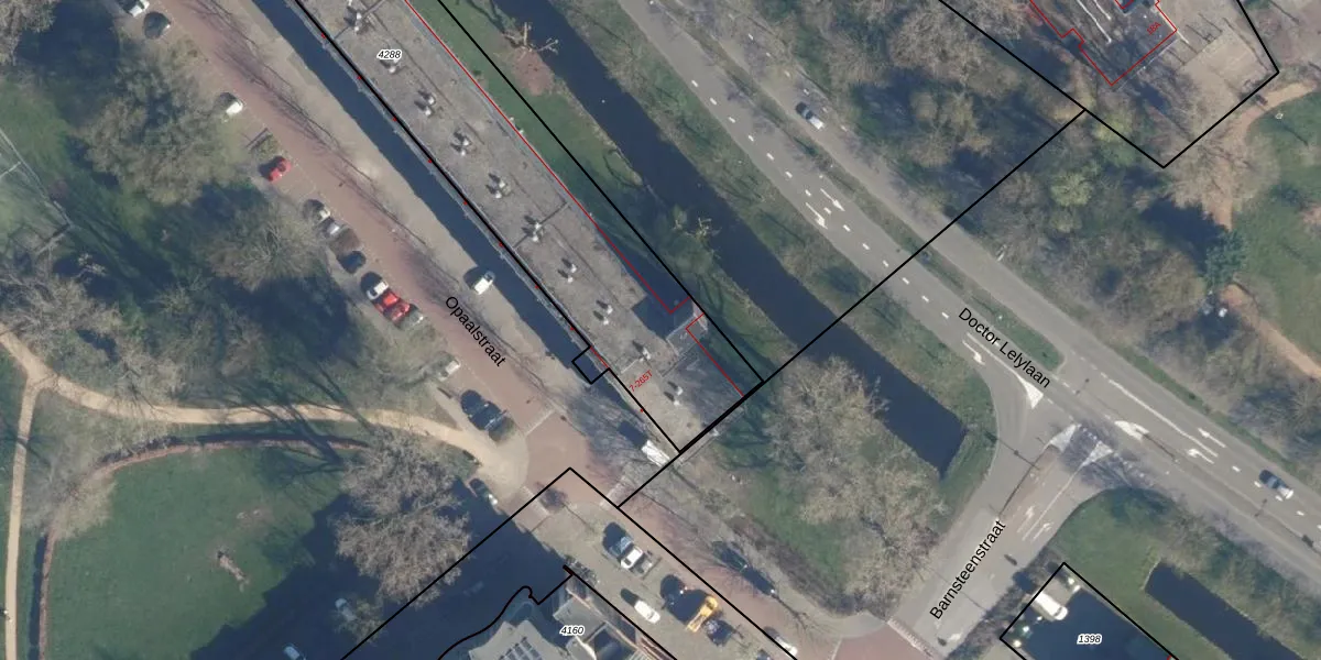 Het adres is gelegen op perceel 4288 in de sectie X en de kadastrale gemeente Leiden. De kadastrale aanduiding is aldus LDN01-X-4288. Het perceel is met 2937 m² relatief groot. Het gemiddelde ligt in de kadastrale gemeente Leiden op 703,94 m². Het kleinste perceel in de kadastrale gemeente is 0 m² groot. De grootste perceeloppervlakte is 51,8 ha. Op het perceel liggen in totaal 124 adressen. De huidige grenzen van het perceel zijn digitaal in de Basisregistratie Kadaster (BRK) geregistreerd op 22-11-2007.