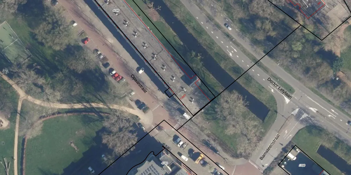 Het adres is gelegen op perceel 4288 in de sectie X en de kadastrale gemeente Leiden. De kadastrale aanduiding is aldus LDN01-X-4288. Het perceel is met 2937 m² relatief groot. Het gemiddelde ligt in de kadastrale gemeente Leiden op 703,94 m². De grootste perceeloppervlakte in de kadastrale gemeente is 51,8 ha. De kleinste oppervlakte bedraagt 0 m². Op het perceel liggen in totaal 124 adressen. De laatste wijziging in het de Basisregistratie Kadaster (BRK) was op 22-11-2007.