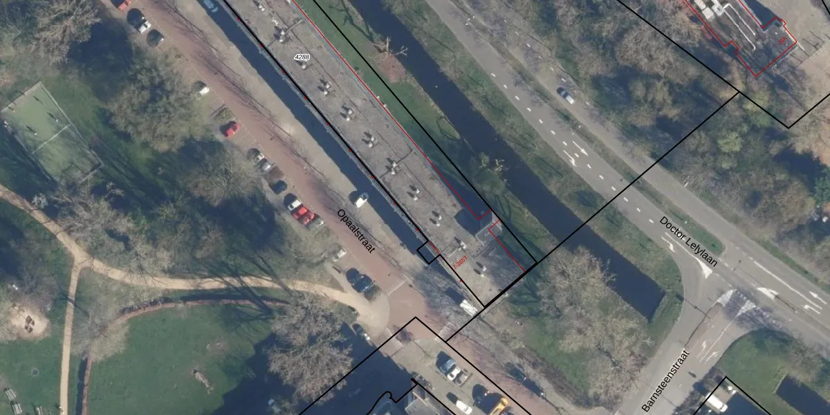 Het adres is gelegen op perceel 4288 in de sectie X en de kadastrale gemeente Leiden. De kadastrale aanduiding is aldus LDN01-X-4288. Het perceel is met 2937 m² relatief groot. Het gemiddelde ligt in de kadastrale gemeente Leiden op 703,94 m². De grootste perceeloppervlakte in de kadastrale gemeente is 51,8 ha. De kleinste oppervlakte bedraagt 0 m². Op het perceel liggen in totaal 124 adressen. De laatste wijziging in het de Basisregistratie Kadaster (BRK) was op 22-11-2007.