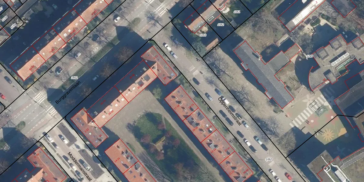 Het perceel waarop Oppenheimstraat 13 staat heeft een oppervlakte van 1,1 ha. Dit is een zeer groot perceel. De perceeloppervlakte wordt geregistreerd door het Kadaster. Gedetailleerde informatie over de maten van dit perceel kunt u vinden in het rapport Kadastrale kaart met maatvoering van Oppenheimstraat 13.