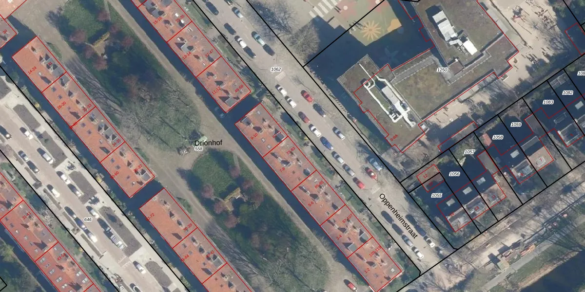 Het perceel waarop Oppenheimstraat 73 staat heeft een oppervlakte van 1,1 ha. Dit is een zeer groot perceel. De perceeloppervlakte wordt geregistreerd door het Kadaster. Gedetailleerde informatie over de maten van dit perceel kunt u vinden in het rapport Kadastrale kaart met maatvoering van Oppenheimstraat 73.
