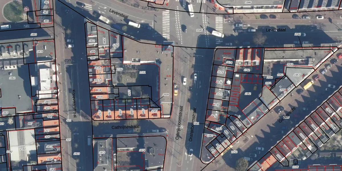 Oranjeboomstraat 11 is gelegen op kadastraal perceel LDN01E2151. Deze kadastrale aanduiding is uniek en wordt gebruikt door het Kadaster om eigendomsrechten en andere zakelijke rechten vast te leggen. Het perceel maakt onderdeel uit van de kadastrale gemeente Leiden.