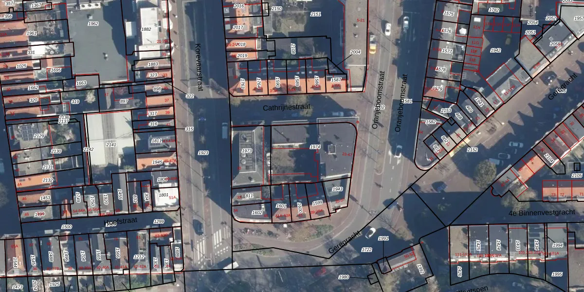 Oranjeboomstraat 25 is gelegen op kadastraal perceel LDN01E1974. Deze kadastrale aanduiding is uniek en wordt gebruikt door het Kadaster om eigendomsrechten en andere zakelijke rechten vast te leggen. Het perceel maakt onderdeel uit van de kadastrale gemeente Leiden.