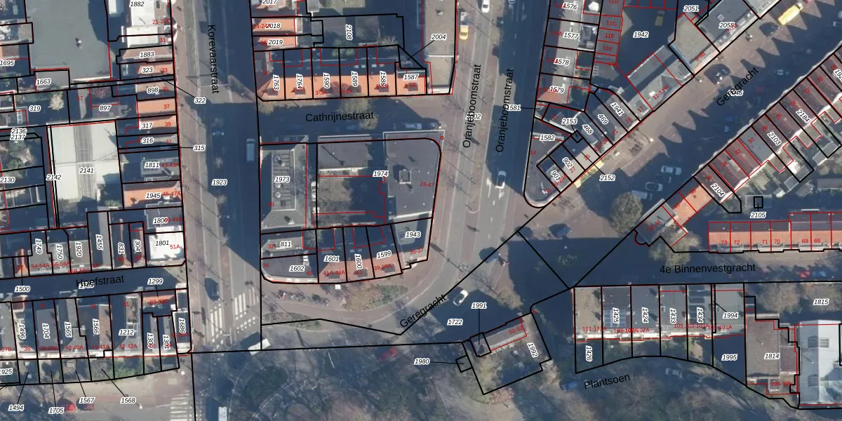 Het perceel waarop het adres ligt is LDN01-E-1974. De afkorting 'LDN01' staat voor kadastrale gemeente Leiden. Het perceel is kleiner dan gemiddeld in Leiden. Het perceel is 540 m² groot, terwijl het gemiddelde ligt op 703,94 m². Het grootste perceel in de kadastrale gemeente is 51,8 ha. Het kleinste perceel heeft een oppervlakte van 0 m². Er zijn 13 adressen aanwezig op het perceel. De laatste wijziging in het de Basisregistratie Kadaster (BRK) was op 02-06-2008.