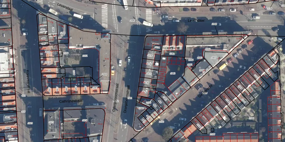 Oranjeboomstraat 6-A is gelegen op kadastraal perceel LDN01E1577. Deze kadastrale aanduiding is uniek en wordt gebruikt door het Kadaster om eigendomsrechten en andere zakelijke rechten vast te leggen. Het perceel maakt onderdeel uit van de kadastrale gemeente Leiden.