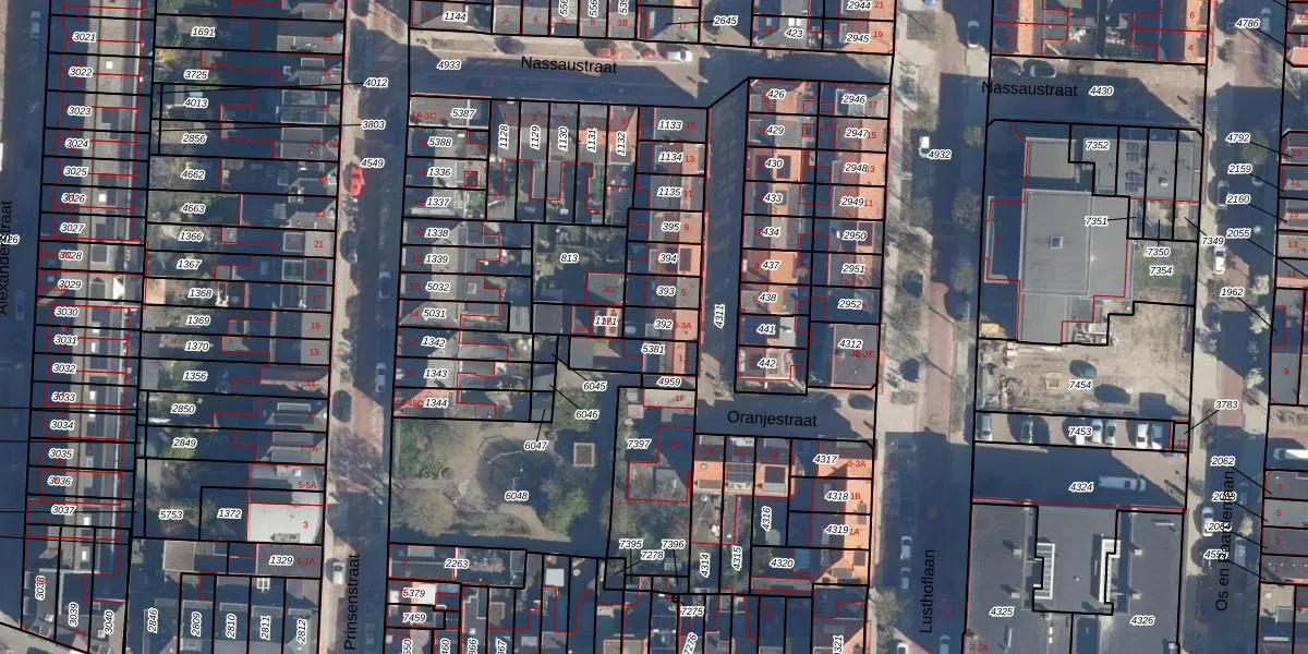 Het perceel waarop Oranjestraat 3-A staat heeft een oppervlakte van 58 m². Dit is een klein perceel. De perceeloppervlakte wordt geregistreerd door het Kadaster. Gedetailleerde informatie over de maten van dit perceel kunt u vinden in het rapport Kadastrale kaart met maatvoering van Oranjestraat 3-A.
