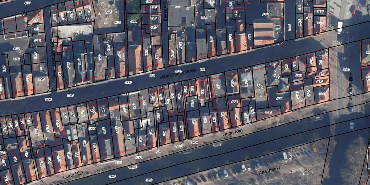 Het adres ligt op het perceel LDN01-H-3507, dat zich in de kadastrale gemeente Leiden bevindt. Het perceel is 40 m² groot. Dat is kleiner dan de gemiddelde perceeloppervlakte in Leiden, dat op 703,94 m² ligt. De grootste perceeloppervlakte in de kadastrale gemeente is 51,8 ha. De kleinste oppervlakte bedraagt 0 m². Er zijn 3 adressen aanwezig op het perceel. De huidige grenzen van het perceel zijn digitaal in de Basisregistratie Kadaster (BRK) geregistreerd op 06-02-1998.