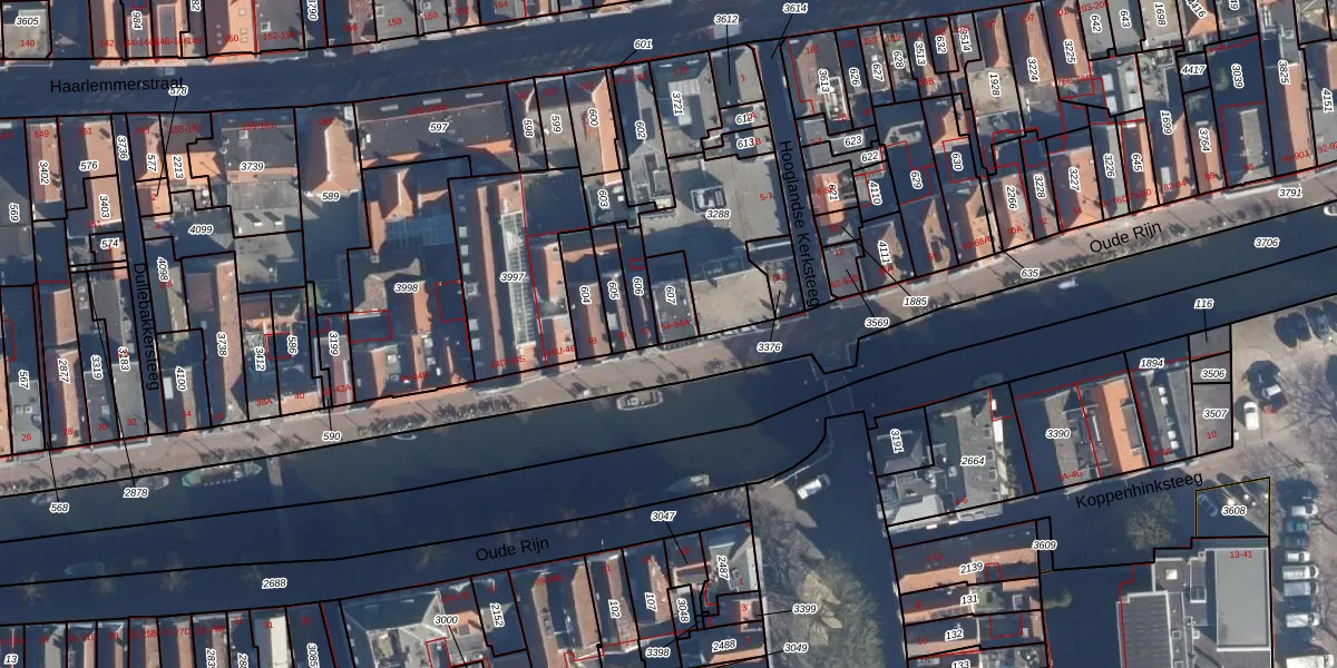 Het perceel waarop het adres ligt is LDN01-H-607. De afkorting 'LDN01' staat voor kadastrale gemeente Leiden. Het perceel is kleiner dan gemiddeld in Leiden. Het perceel is 77 m² groot, terwijl het gemiddelde ligt op 703,94 m². Het kleinste perceel in de kadastrale gemeente is 0 m² groot. De grootste perceeloppervlakte is 51,8 ha. Er zijn 2 adressen aanwezig op het perceel. De laatste wijziging in het de Basisregistratie Kadaster (BRK) was op 06-02-1998.
