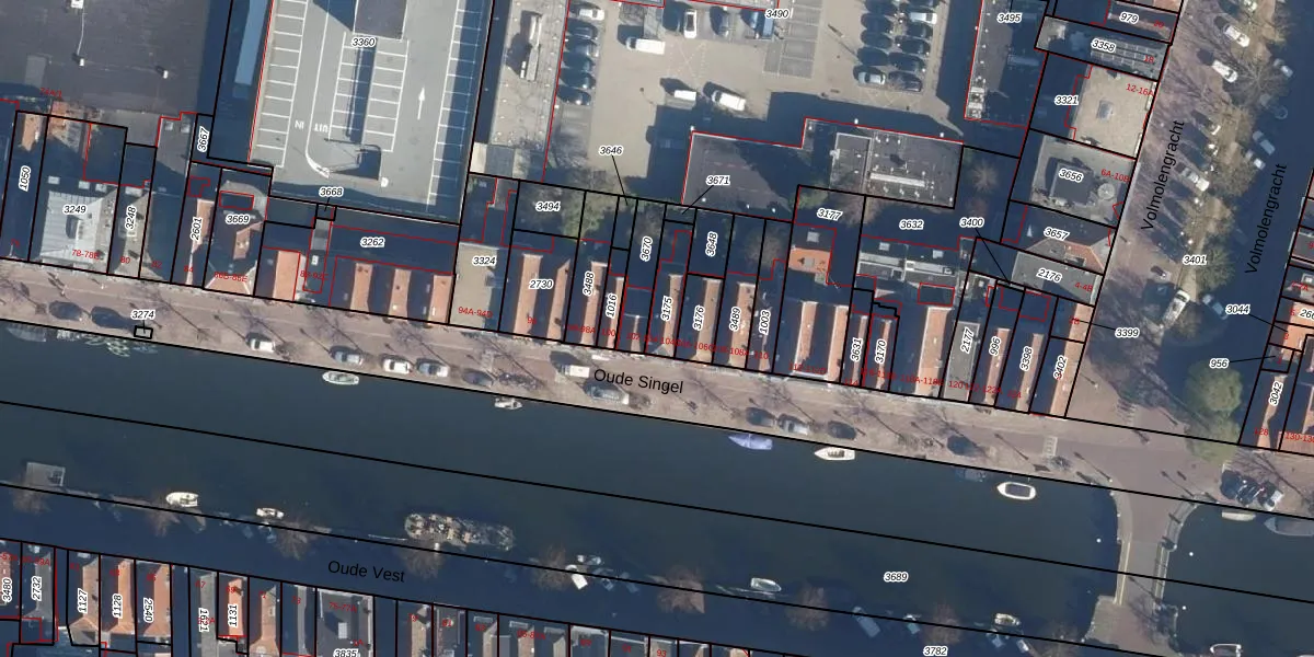 Het perceel waarop Oude Singel 104-B staat heeft een oppervlakte van 95 m². Dit is een klein perceel. De perceeloppervlakte wordt geregistreerd door het Kadaster. Gedetailleerde informatie over de maten van dit perceel kunt u vinden in het rapport Kadastrale kaart met maatvoering van Oude Singel 104-B.
