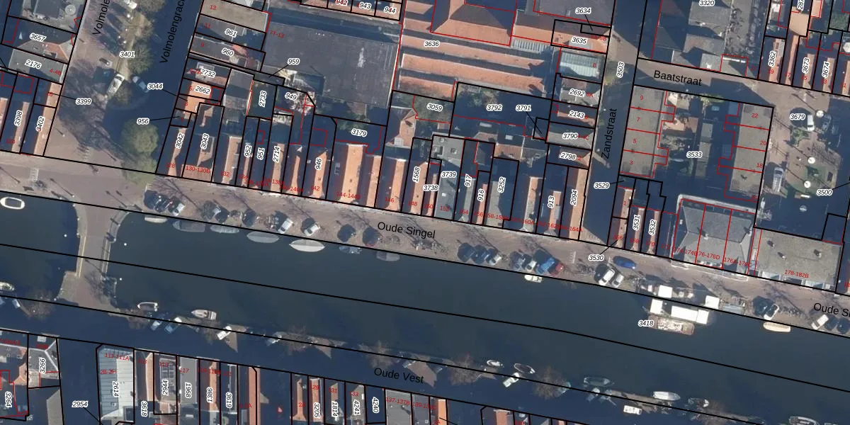 Het perceel waarop Oude Singel 150 staat heeft een oppervlakte van 38 m². Dit is een klein perceel. De perceeloppervlakte wordt geregistreerd door het Kadaster. Gedetailleerde informatie over de maten van dit perceel kunt u vinden in het rapport Kadastrale kaart met maatvoering van Oude Singel 150.