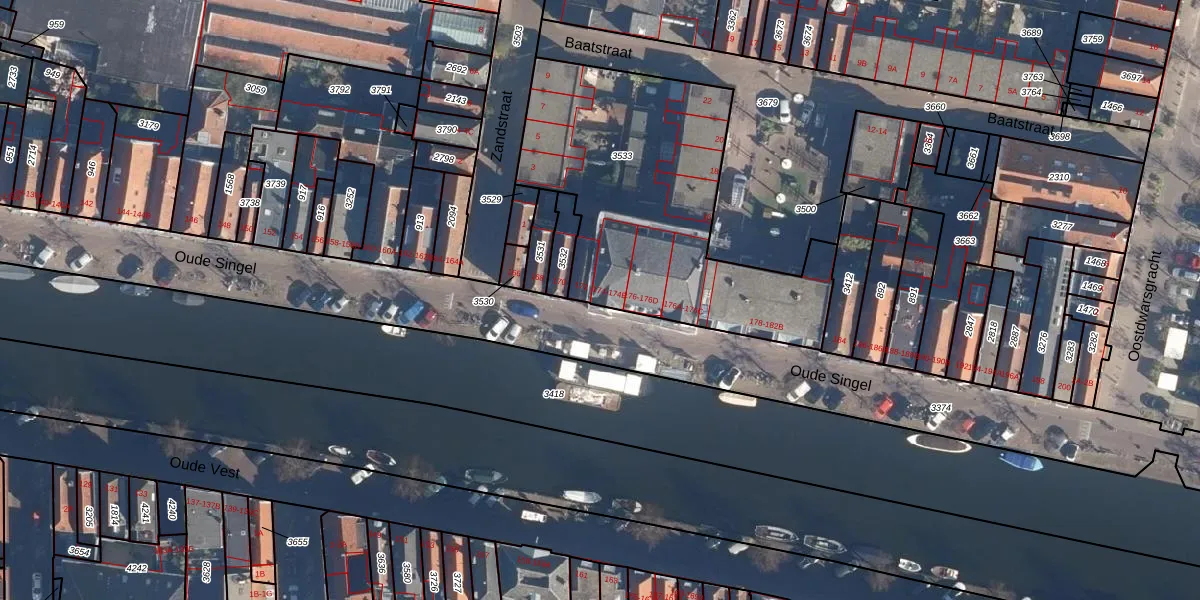 Oude Singel 174 is gelegen op kadastraal perceel LDN01B3533. Deze kadastrale aanduiding is uniek en wordt gebruikt door het Kadaster om eigendomsrechten en andere zakelijke rechten vast te leggen. Het perceel maakt onderdeel uit van de kadastrale gemeente Leiden.