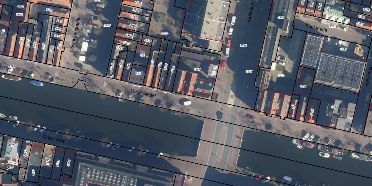 Oude Singel 222 is gelegen op kadastraal perceel LDN01B3287. Deze kadastrale aanduiding is uniek en wordt gebruikt door het Kadaster om eigendomsrechten en andere zakelijke rechten vast te leggen. Het perceel maakt onderdeel uit van de kadastrale gemeente Leiden.
