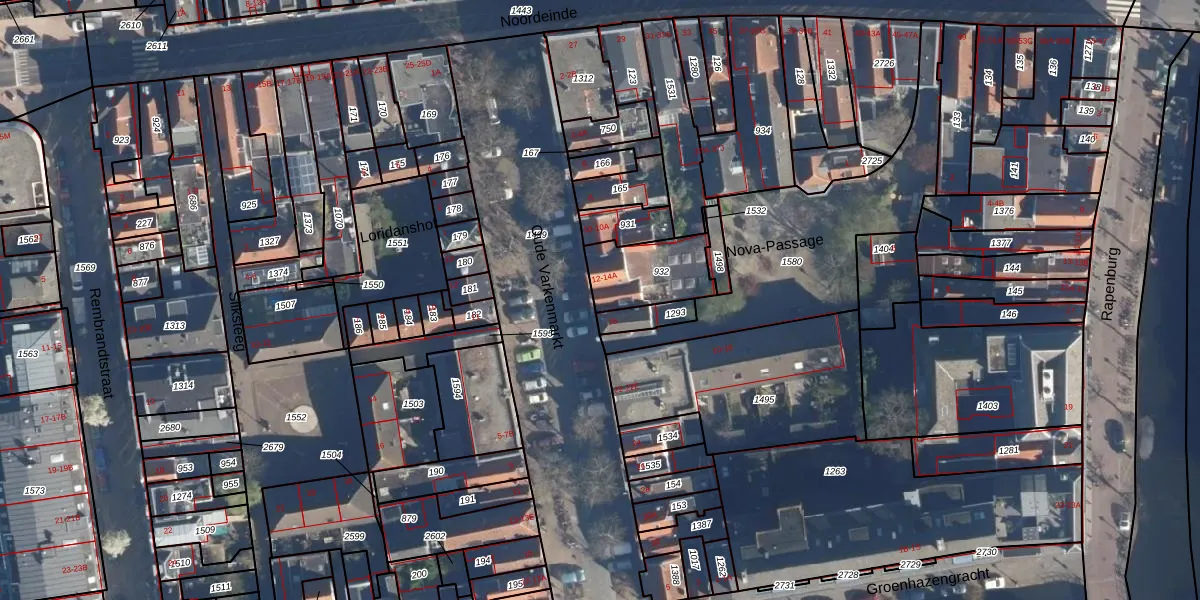 Oude Varkenmarkt 14 is gelegen op kadastraal perceel LDN01F932. Deze kadastrale aanduiding is uniek en wordt gebruikt door het Kadaster om eigendomsrechten en andere zakelijke rechten vast te leggen. Het perceel maakt onderdeel uit van de kadastrale gemeente Leiden.