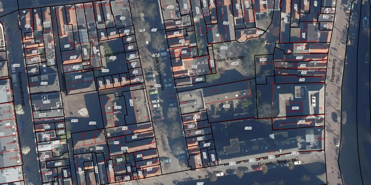 Het perceel waarop Oude Varkenmarkt 22-D staat heeft een oppervlakte van 735 m². Dit is een groot perceel. De perceeloppervlakte wordt geregistreerd door het Kadaster. Gedetailleerde informatie over de maten van dit perceel kunt u vinden in het rapport Kadastrale kaart met maatvoering van Oude Varkenmarkt 22-D.