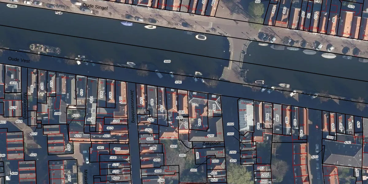 Het perceel waarop Oude Vest 107 staat heeft een oppervlakte van 80 m². Dit is een klein perceel. De perceeloppervlakte wordt geregistreerd door het Kadaster. Gedetailleerde informatie over de maten van dit perceel kunt u vinden in het rapport Kadastrale kaart met maatvoering van Oude Vest 107.