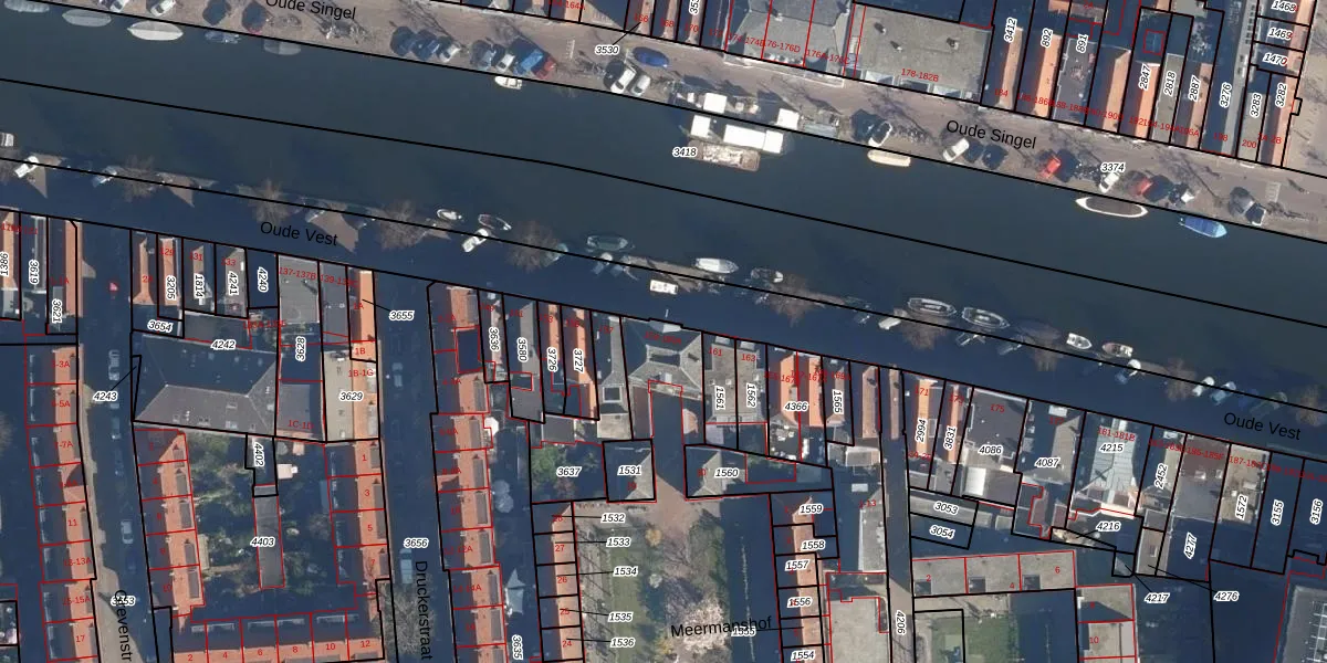 Oude Vest 159-A is gelegen op kadastraal perceel LDN01H3443. Deze kadastrale aanduiding is uniek en wordt gebruikt door het Kadaster om eigendomsrechten en andere zakelijke rechten vast te leggen. Het perceel maakt onderdeel uit van de kadastrale gemeente Leiden.
