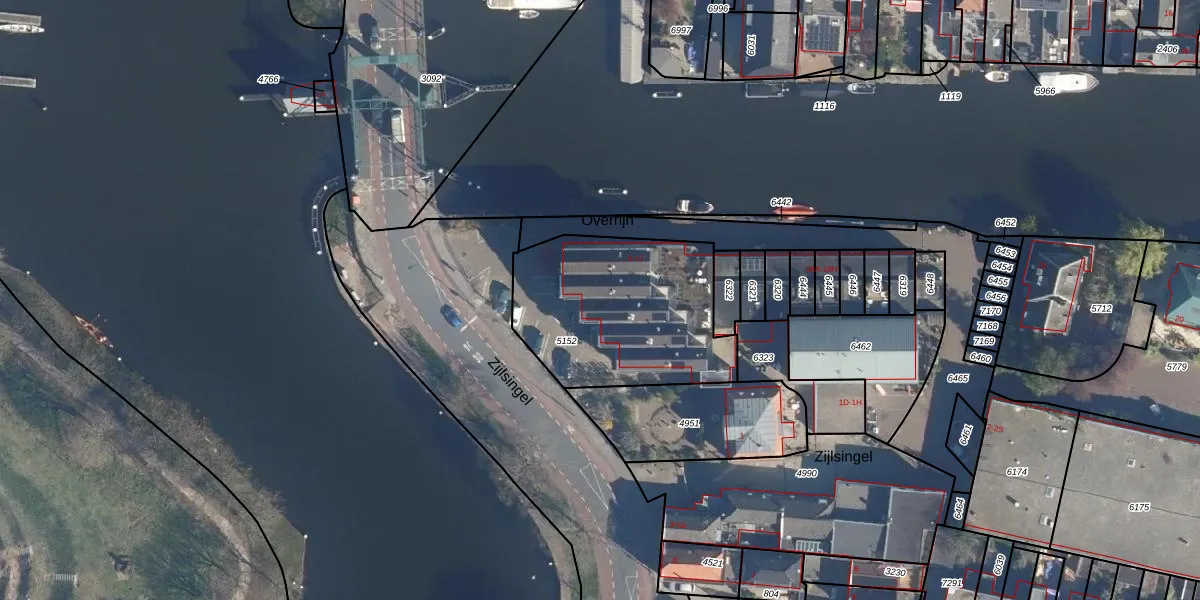 Overrijn 13 is gelegen op kadastraal perceel LDN01K5152. Deze kadastrale aanduiding is uniek en wordt gebruikt door het Kadaster om eigendomsrechten en andere zakelijke rechten vast te leggen. Het perceel maakt onderdeel uit van de kadastrale gemeente Leiden.