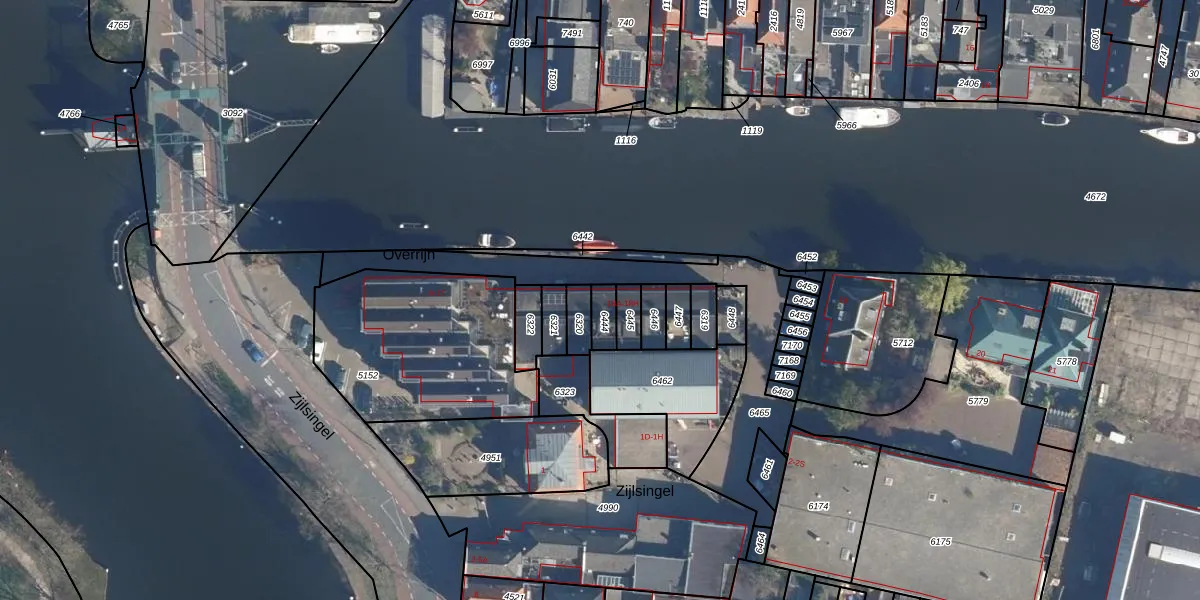 Overrijn 18-D is gelegen op kadastraal perceel LDN01K6444. Deze kadastrale aanduiding is uniek en wordt gebruikt door het Kadaster om eigendomsrechten en andere zakelijke rechten vast te leggen. Het perceel maakt onderdeel uit van de kadastrale gemeente Leiden.