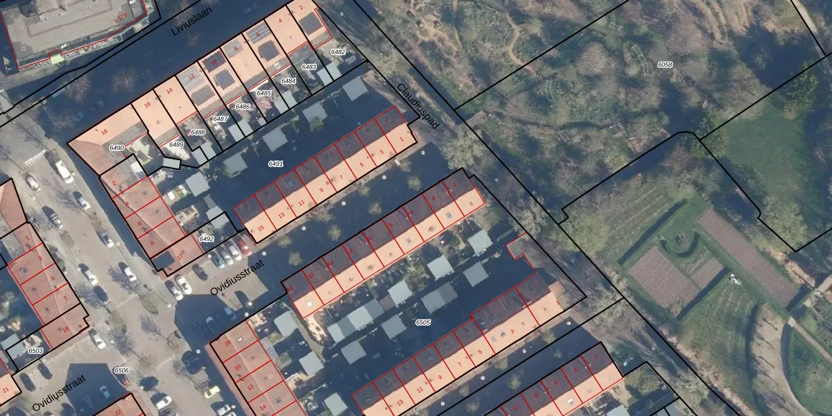 Ovidiusstraat 6 is gelegen op kadastraal perceel LDN01T6505. Deze kadastrale aanduiding is uniek en wordt gebruikt door het Kadaster om eigendomsrechten en andere zakelijke rechten vast te leggen. Het perceel maakt onderdeel uit van de kadastrale gemeente Leiden.