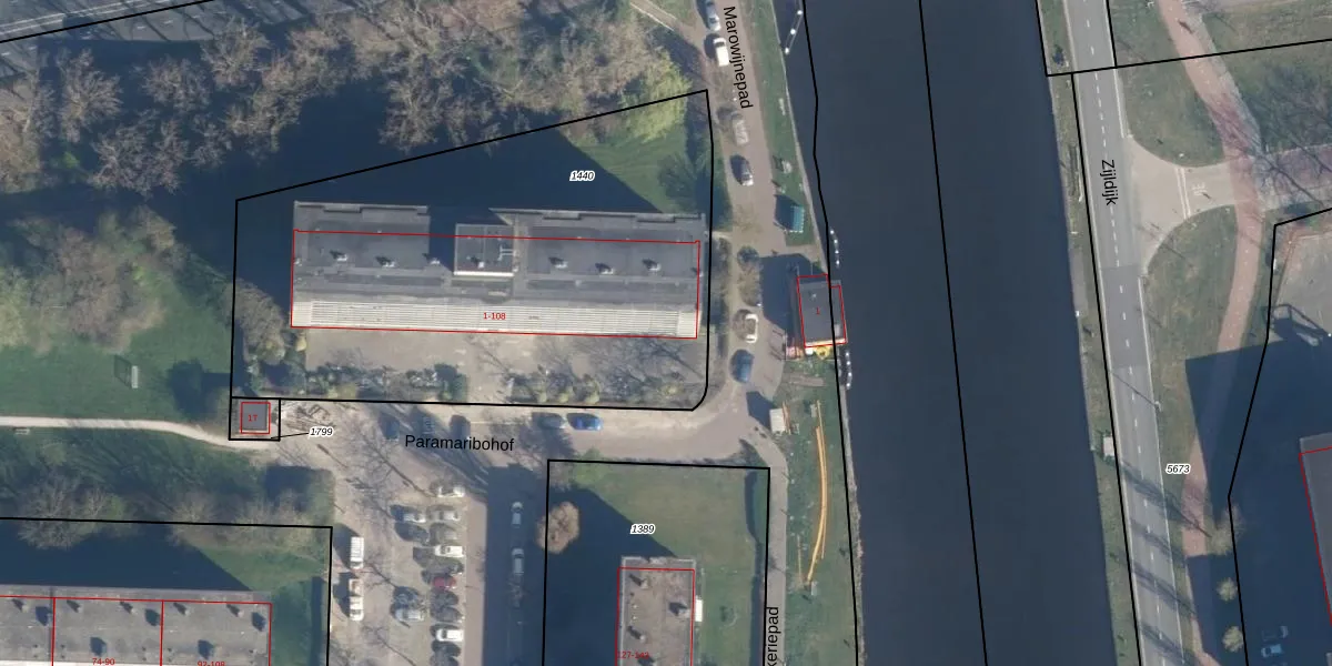 Het perceel waarop Paramaribohof 10 staat heeft een oppervlakte van 2765 m². Dit is een zeer groot perceel. De perceeloppervlakte wordt geregistreerd door het Kadaster. Gedetailleerde informatie over de maten van dit perceel kunt u vinden in het rapport Kadastrale kaart met maatvoering van Paramaribohof 10.