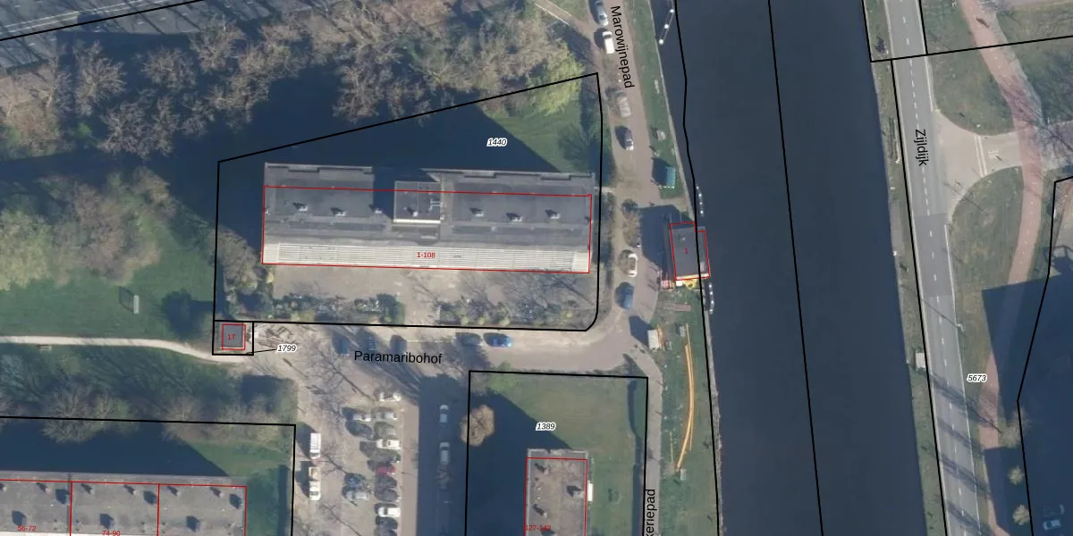 Het perceel waarop Paramaribohof 9 staat heeft een oppervlakte van 2765 m². Dit is een zeer groot perceel. De perceeloppervlakte wordt geregistreerd door het Kadaster. Gedetailleerde informatie over de maten van dit perceel kunt u vinden in het rapport Kadastrale kaart met maatvoering van Paramaribohof 9.