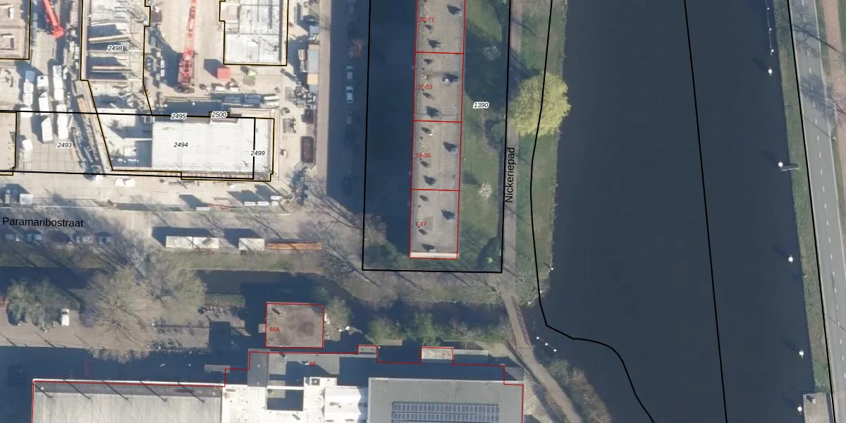 Het perceel waarop Paramaribostraat 13 staat heeft een oppervlakte van 2338 m². Dit is een zeer groot perceel. De perceeloppervlakte wordt geregistreerd door het Kadaster. Gedetailleerde informatie over de maten van dit perceel kunt u vinden in het rapport Kadastrale kaart met maatvoering van Paramaribostraat 13.