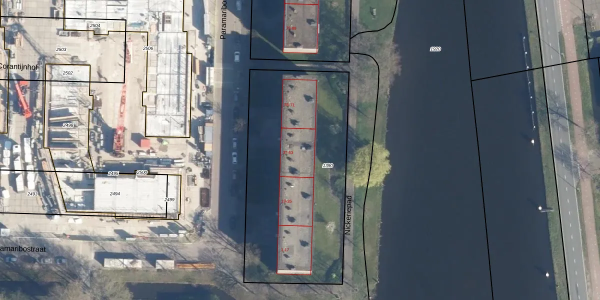 Het perceel waarop Paramaribostraat 43 staat heeft een oppervlakte van 2338 m². Dit is een zeer groot perceel. De perceeloppervlakte wordt geregistreerd door het Kadaster. Gedetailleerde informatie over de maten van dit perceel kunt u vinden in het rapport Kadastrale kaart met maatvoering van Paramaribostraat 43.