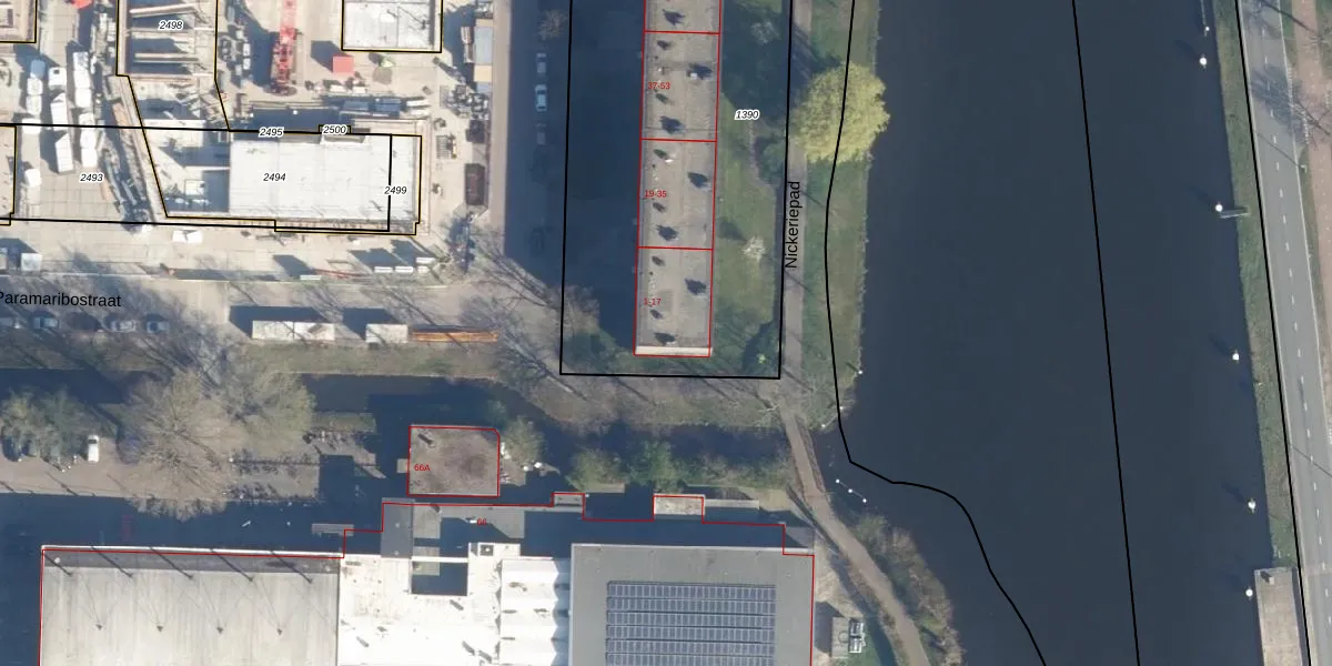 Het perceel waarop Paramaribostraat 5 staat heeft een oppervlakte van 2338 m². Dit is een zeer groot perceel. De perceeloppervlakte wordt geregistreerd door het Kadaster. Gedetailleerde informatie over de maten van dit perceel kunt u vinden in het rapport Kadastrale kaart met maatvoering van Paramaribostraat 5.