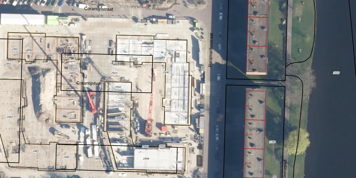 Het perceel waarop Paramaribostraat 54 staat heeft een oppervlakte van 991 m². Dit is een groot perceel. De perceeloppervlakte wordt geregistreerd door het Kadaster. Gedetailleerde informatie over de maten van dit perceel kunt u vinden in het rapport Kadastrale kaart met maatvoering van Paramaribostraat 54.