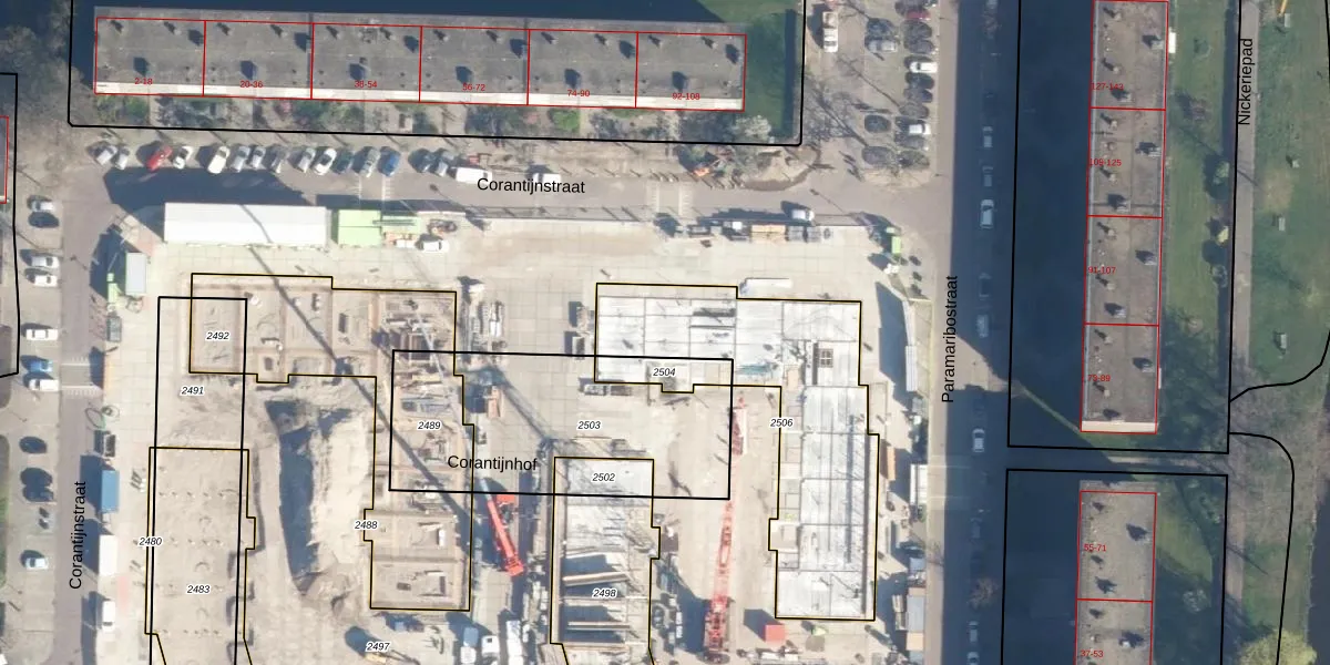 Het perceel waarop Paramaribostraat 68 staat heeft een oppervlakte van 991 m². Dit is een groot perceel. De perceeloppervlakte wordt geregistreerd door het Kadaster. Gedetailleerde informatie over de maten van dit perceel kunt u vinden in het rapport Kadastrale kaart met maatvoering van Paramaribostraat 68.