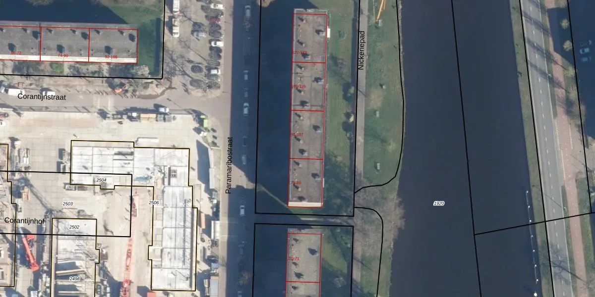 Het perceel waarop Paramaribostraat 91 staat heeft een oppervlakte van 2768 m². Dit is een zeer groot perceel. De perceeloppervlakte wordt geregistreerd door het Kadaster. Gedetailleerde informatie over de maten van dit perceel kunt u vinden in het rapport Kadastrale kaart met maatvoering van Paramaribostraat 91.