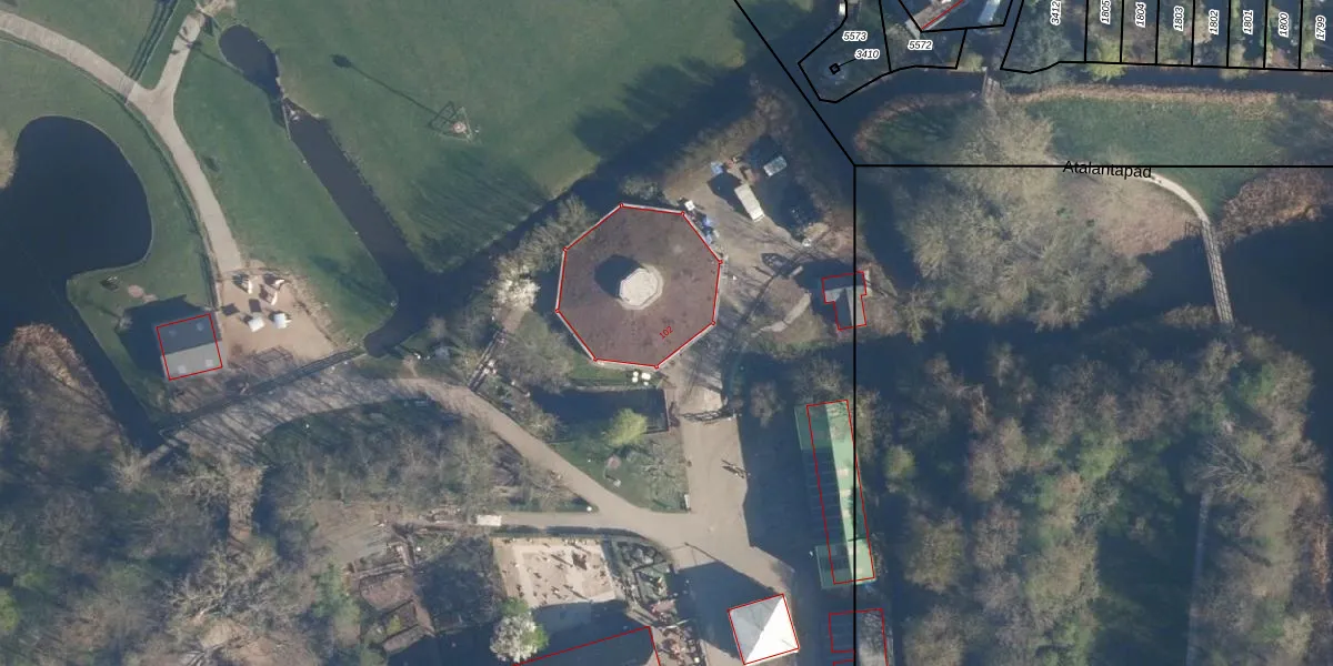 Het perceel waarop Parkzicht 102 staat heeft een oppervlakte van 13,4 ha. Dit is een zeer groot perceel. De perceeloppervlakte wordt geregistreerd door het Kadaster. Gedetailleerde informatie over de maten van dit perceel kunt u vinden in het rapport Kadastrale kaart met maatvoering van Parkzicht 102.